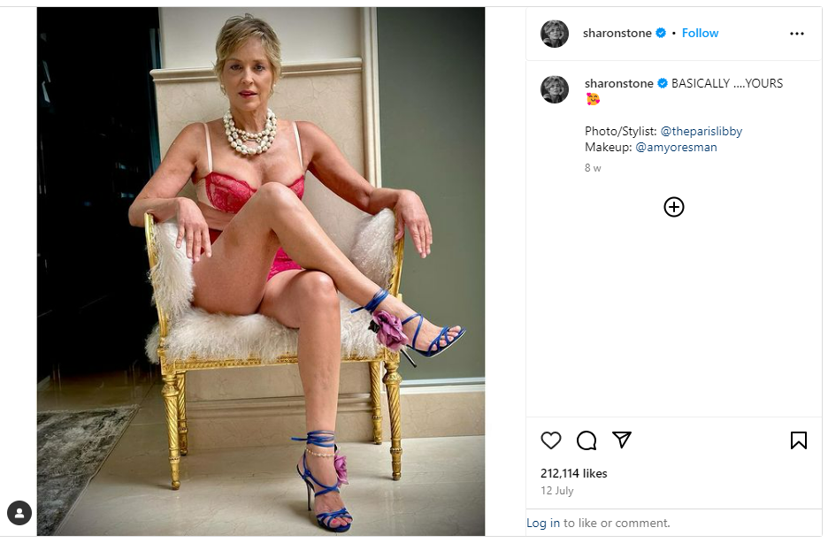The legendary Sharon Stone reenacted a moment from the classic film “Basic Instinct” and posed while wearing only her undergarments.Sharon Stone, 66 years old, posted an Instagram photo of herself in red lace underwear—32 years after her iconic role as the alluring Catherine Tramell.