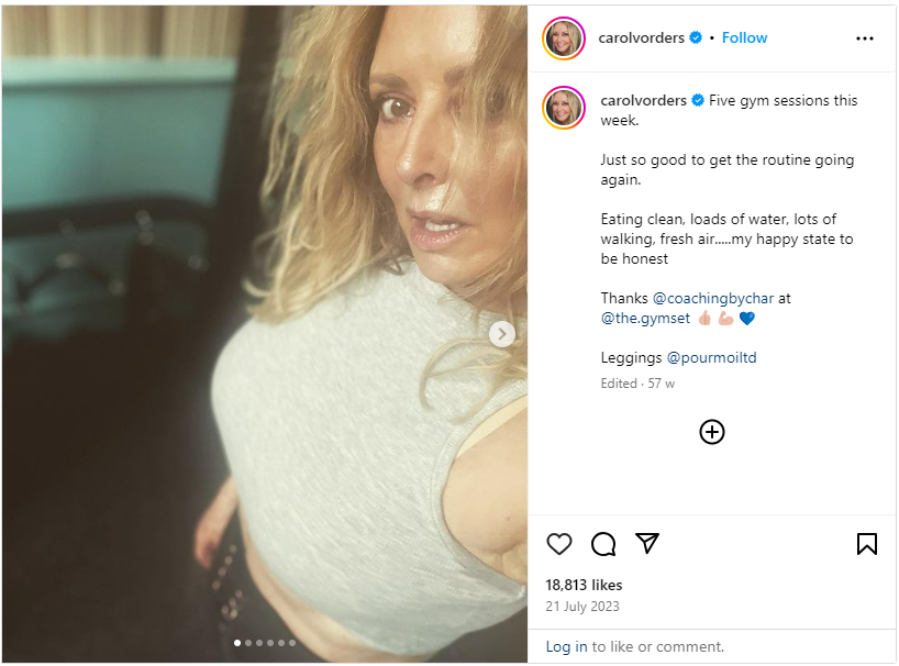Carol Vorderman is clearly very disciplined with her workout regimen and we applaud her for staying true to herself and relationships!