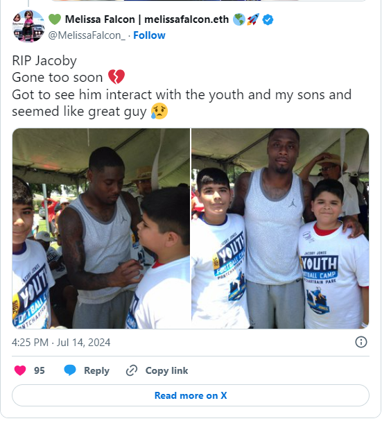 Fans of Jacoby also wrote about him on social media. One parent, in particular, shared photos of the celebrity posing and talking with her two sons on X. Jacoby, ” RIP Jacoby Gone too soon. Got to see him interact with the youth and my sons and seemed like great guy,” she wrote.
