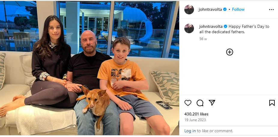 This year, Travolta celebrated Father’s Day with his children two years after his wife passed away. He took to Facebook to share a photo of himself sitting with his daughter and son on a couch as their dog sat on his lap. He then wished all the “dedicated fathers” a Happy Father’s Day.