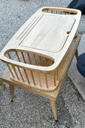 Reddit user crunchsmash said: “It’s a bed/lap desk. There’s supposed to be a metal bar underneath that slots into the wooden tray, so you can prop it up at different angles for reading and stuff”