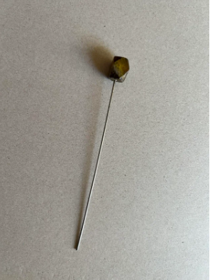 “Found in house during a remodel. It’s six inches long with a stone on the end. Google image search says it’s a pin but the end is dull. Any ideas?”