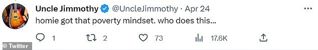 Comedian James Andre Jefferson Jr. reacted to the viral video, saying: ‘Baby hasn’t been in the world for longer than 28 minutes and you’re making it rain on your baby with some dirty a** money.