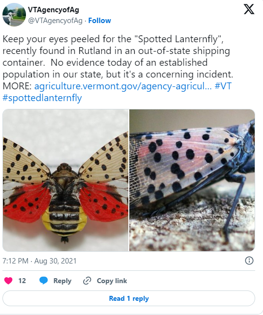 Since it first traveled from China to Pennsylvania in 2014, it’s spread to parts of North America, feeding on plants like fruit trees (apple, cherry or grape) and hardwoods like maple or walnut, killing them over time.