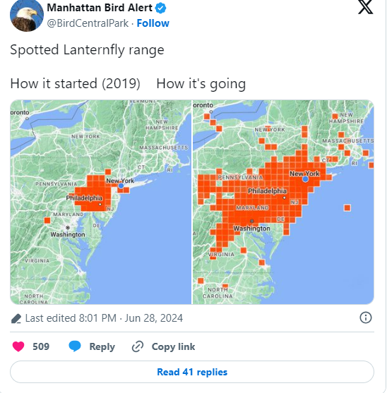 Another user shares his triumph over his recent kills: “Out for a walk, saw a spotted lanternfly. STOMP. Yay! 10 feet further on, ooh, another one. STOMP. Yay!”