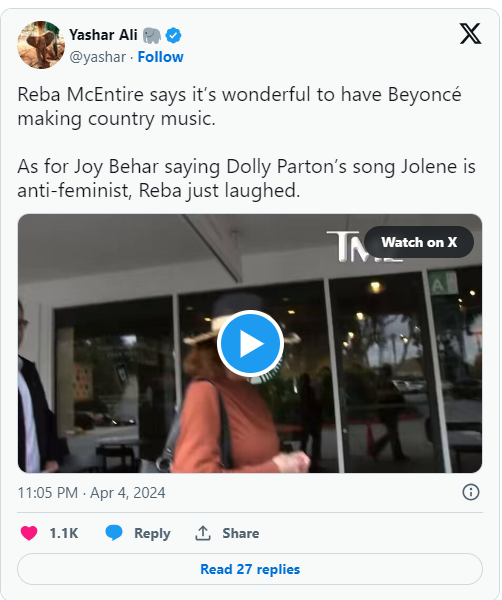Naturally, many people had opinions on the subject, including country music star Reba McEntire. When asked about Joy Behar’s comment, McEntire simply laughed and praised Beyoncé for her contributions to country music.