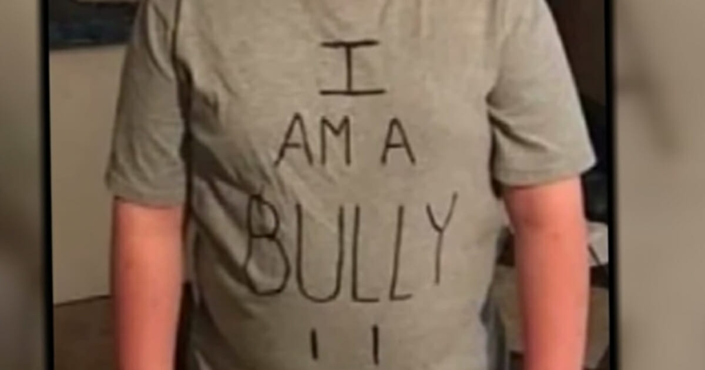 Instead of simply telling him off, or even ordering him to deliver an apology to the affected kids, Star opted to dress her son in a t-shirt that read “I AM A BULLY”. She then took photos of him before school and uploaded it to Facebook so that everyone could see.