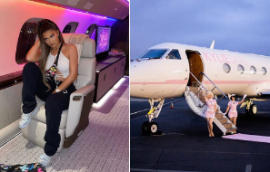 While most 23-year-olds navigate the post-college phase striving to establish financial stability, Kylie Jenner, in a league of her own. Casually invested a whopping $73 million in a Bombardier Global 7500. Dubbed “Kylie Air,” her jet is an opulent display of luxury. Featuring custom pink lighting and the capacity to accommodate up to ten passengers.It boasts a full-size double bed for mid-air naps, a flat-screen TV, and an array of luxurious amenities that correspond with the substantial price tag. With a staggering net worth of $900 million, the investment aligns with Jenner’s financial capacity.Apart from its lavish features, Kylie’s jet serves as a strategic platform for advertising her renowned Kylie Cosmetics brand. Every detail within the aircraft, from the logo to the seats and TVs, reflects the brand’s identity. Seamlessly integrating the essence of Kylie’s empire. It stands not only as a symbol of luxury but also as a prime opportunity for brand promotion. E, embodying everything synonymous with the Kylie Jenner image.