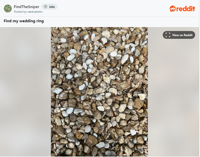 In a Reddit post, a woman asked others to help locate the piece of jewelry amid a deceptive arrangement of small rocks and pebbles.