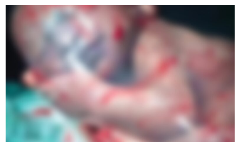 When she gave birth, the baby was healthy, weighing just over 3.2 kilograms (seven pounds). Yet it was what he held that stunned the medical staff and later millions online.