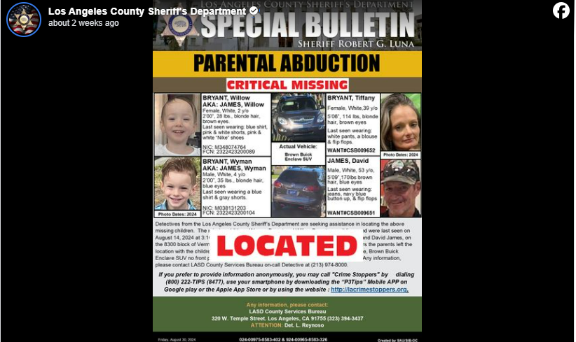The Los Angeles County Sheriff’s Department issued an Amber Alert on August 19, warning the public to be on the lookout for the children and their parents. Despite the alerts and ongoing investigations, the family has not been seen since the day of the abduction, and authorities are urging the public to remain vigilant.