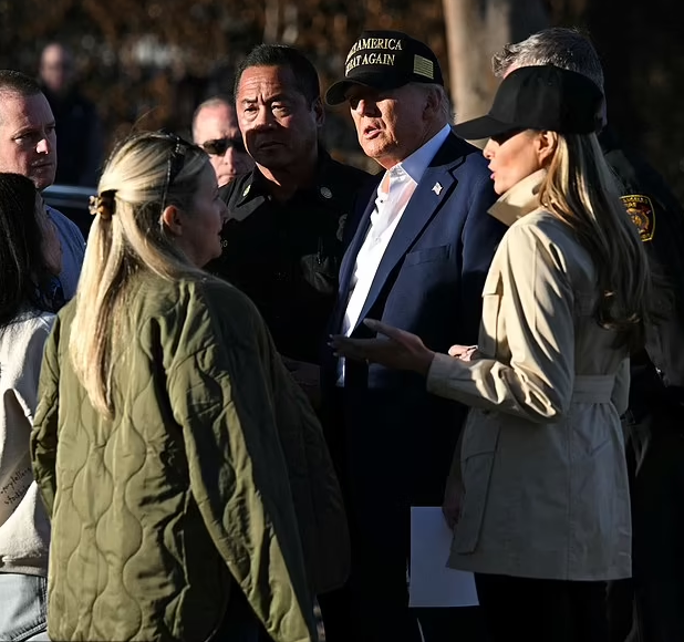 Melania Trump offered words of comfort in a mix of Slovenian and Serbian yesterday to a woman who was affected by the Pacific Palisades wildfire