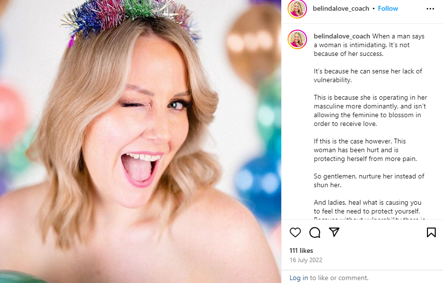 These days Belinda is practicing celibacy, stating her belief that people today use sex for the “wrong reasons”.