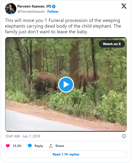 Parveen Kaswan, a forest ranger in the Indian Foreign Service, posted a video of Indian elephants performing a human-like funeral service for a baby elephant last Friday.